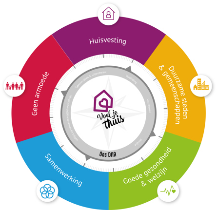 Voor ons nieuwe ondernemingsplan – of beter gezegd: ons OndernemingsDoen – spraken we met huurders en partners. Wat verwachten zij van ons? Waar kunnen we écht het verschil maken? Op basis van die gesprekken – van buiten naar binnen – kozen we onze koers waarop we onze energie en middelen de komende jaren inzetten. De ontwikkeldoelen waarop we het verschil willen maken, zijn gebaseerd op vijf Sustainable Development Goals van de VN. Want dáár ligt volgens onze partners en huurders onze maatschappelijke opgave.