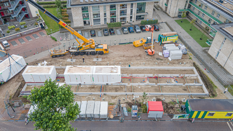 “We verwachten in een periode van 2 maanden het gebouw neer te zetten. En daarna begint de afwerking.” Stelt Jonker. “Dan plaatsen we bijvoorbeeld nog de liften. En maken we de aansluitingen met de stroomvoorzieningen. Maar we gaan ook aan de slag met de terreininrichting. Zoals het groen en de parkeerplaatsen.” Vult Oord aan.