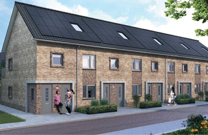 Op ’t Kempke komt veel groen. Fijn om in te wonen. Maar ook goed tegen hittestress in de zomer. En om bij hevige regenbuien het water op te vangen, langer vast te houden en zo weer droogte tegen te gaan. Dat noemen we klimaatadaptief bouwen. Alle woningen zijn volledig elektrisch. Door zonnepanelen en een warmtepomp te combineren, zijn de woningen bovendien energiezuinig. Dat is goed voor het milieu én voor de energierekening. Win-win!